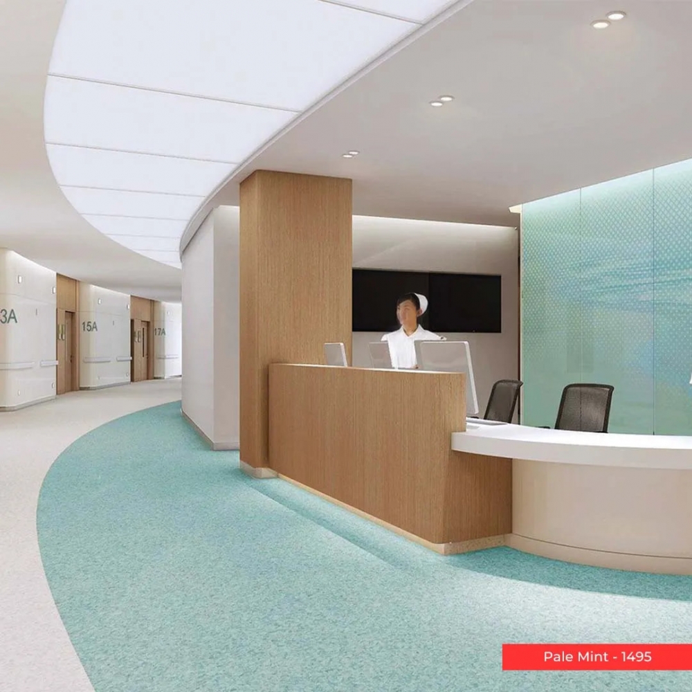 Sàn vinyl cuộn Pale Mint 1495 ECOFLOOR mang đến làn gió mới cho không gian với gam màu xanh bạc hà nhẹ nhàng, tươi mát và đầy tinh tế. Đây là lựa chọn lý tưởng cho những công trình yêu cầu sự sạch sẽ, hiện đại và cảm giác dễ chịu khi sử dụng. Sản phẩm không chỉ nổi bật về thẩm mỹ mà còn sở hữu độ bền cao, khả năng chống mài mòn và chống nước hiệu quả. Nhờ đó, sàn vinyl cuộn ECOFLOOR đáp ứng tốt nhu cầu sử dụng trong các môi trường có tần suất hoạt động lớn như bệnh viện, trường học, văn phòng hay khu thương mại.